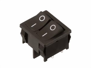 Matrize und Stempel für 2 getrennte Schalter 1-polig EIN mit Beschriftung 0/1, Schaltleistung je 6 A/250 V~, für Snap-in-Befestigung, erforderliche Einbauöffnung 22x19 mm, 4,8 mm Flachstecker