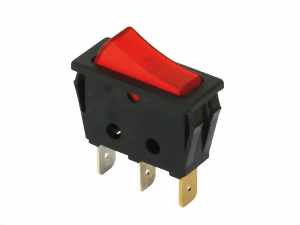 Matrize und Stempel für einen Kontroll-Wippenschalter 1-polig EIN/AUS, rot beleuchtet, Schaltleistung 10 A/250 V~, für Snap-in-Befestigung, erforderliche Einbauöffnung 11x27